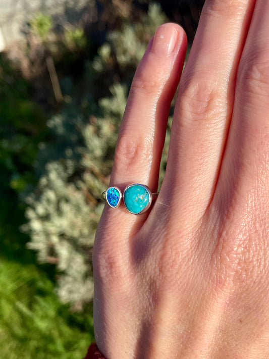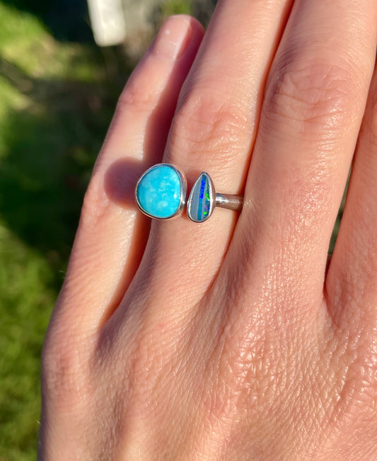4 Turquoise and Opal split ring size 8-9