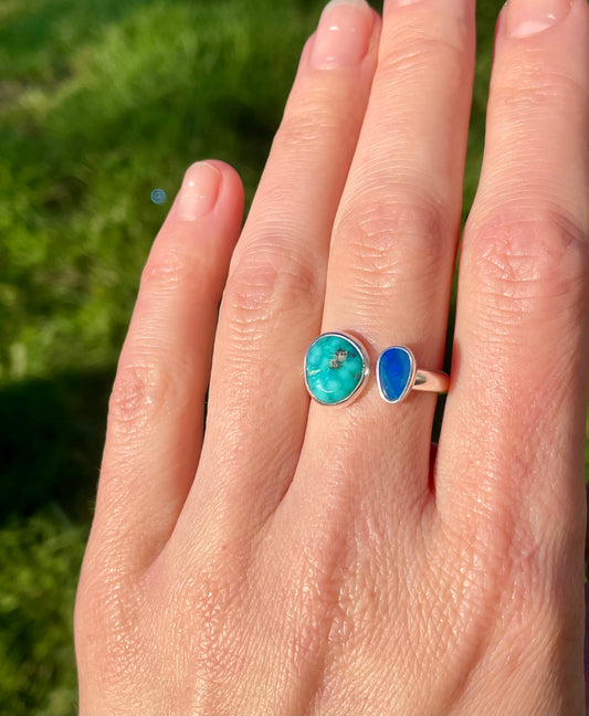 2 Turquoise and Opal split ring size 6.5-7.5