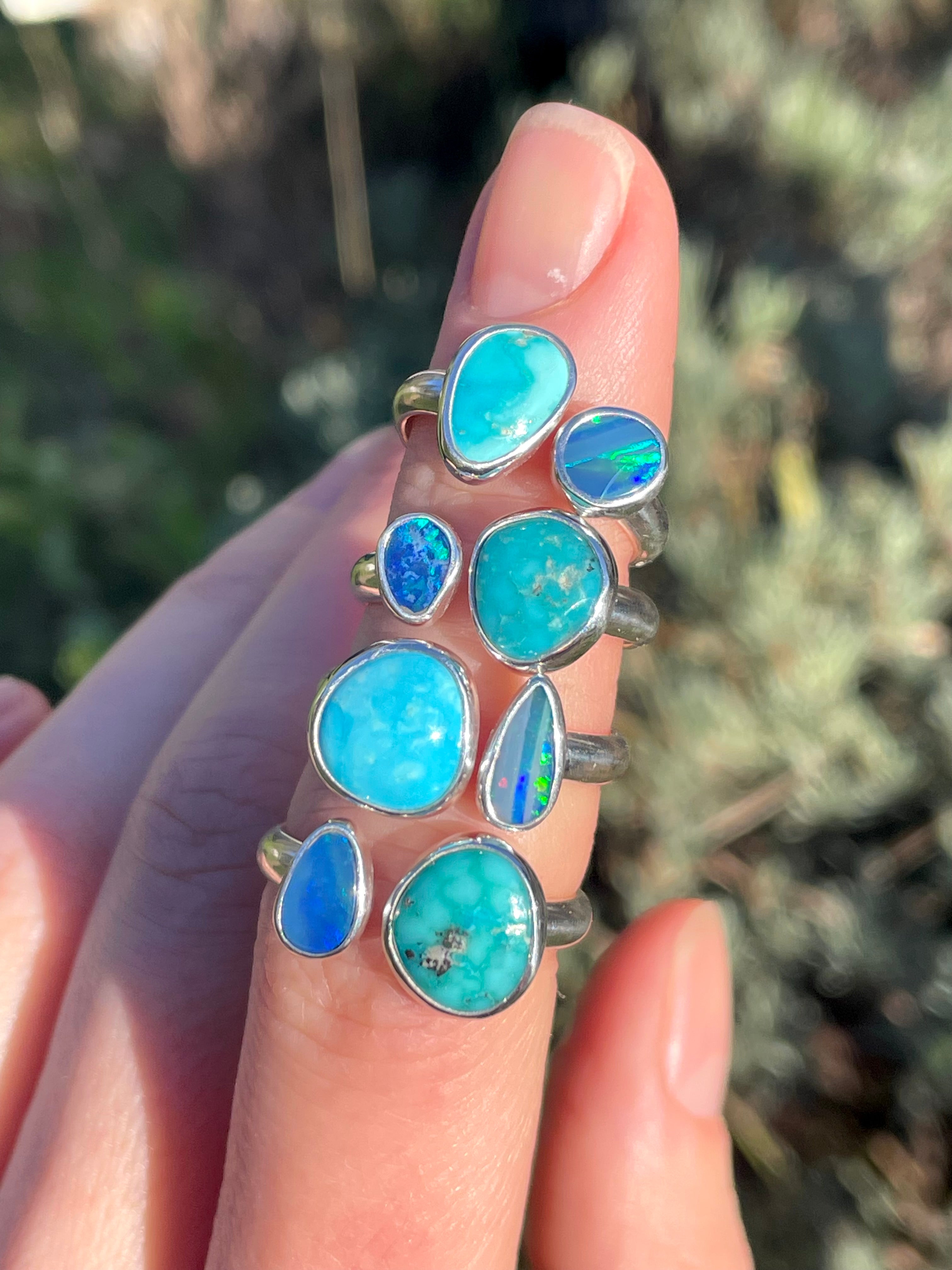 Every single piece of jewelry is fabricated using traditional techniques with recycled metals and one of a kind ethically mined precious and semi-precious stones