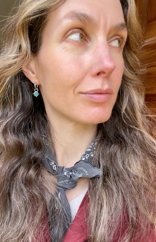 Sold outSquare Turquoise Huggie Hoop 2