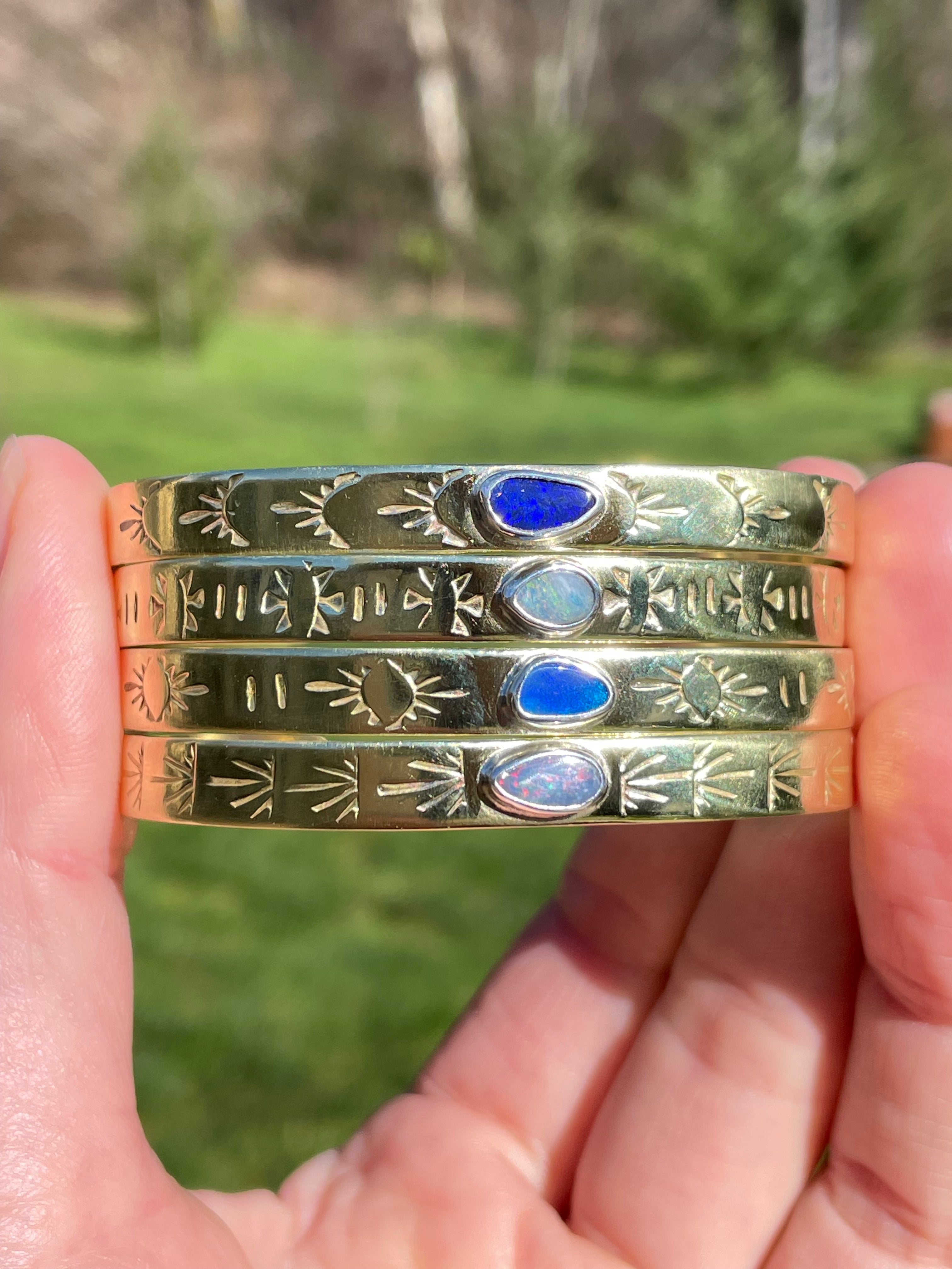 Every single piece of jewelry is fabricated using traditional techniques with recycled metals and one of a kind ethically mined precious and semi-precious stones