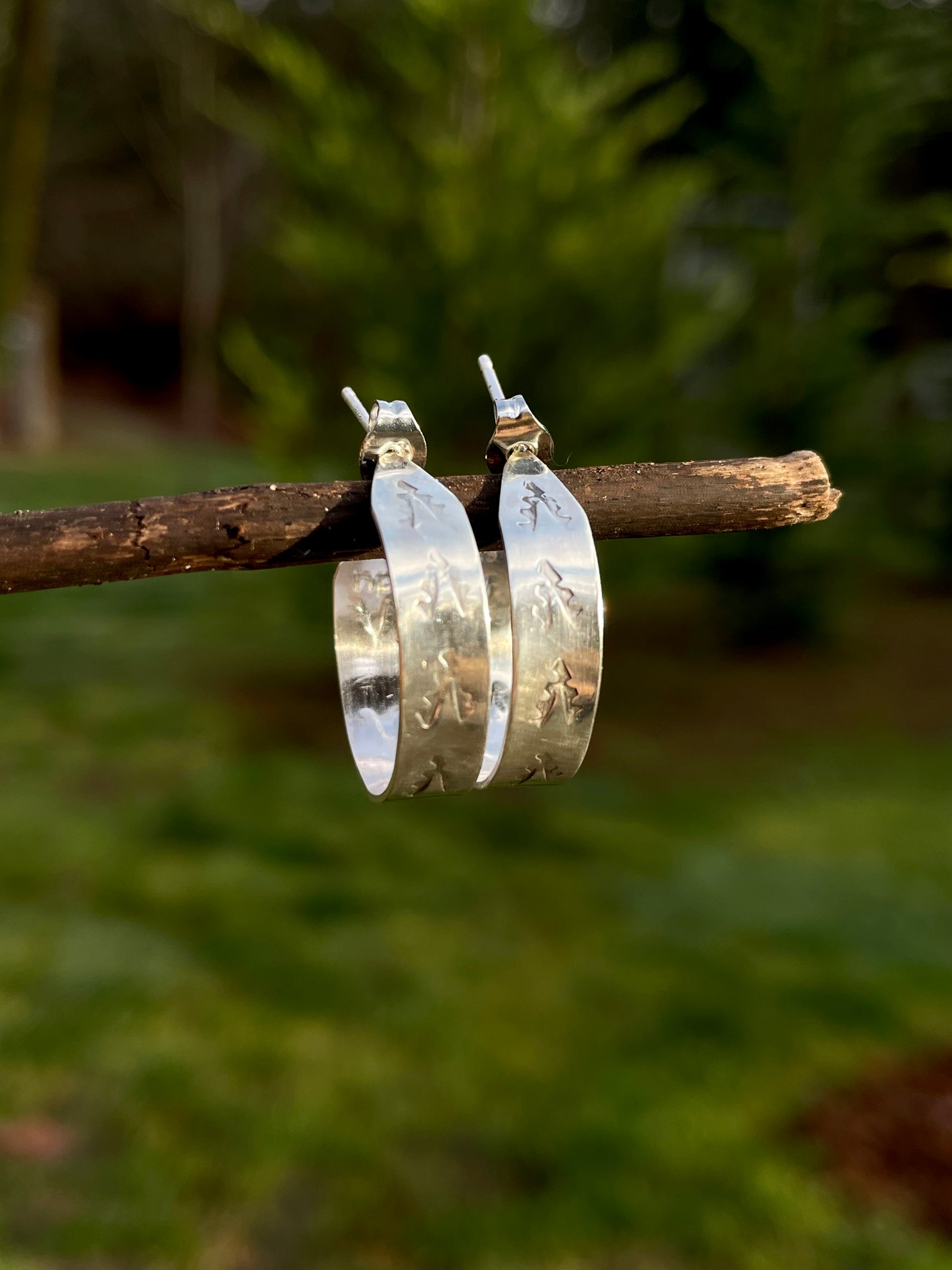 Hand stamped Sterling Hoops 2