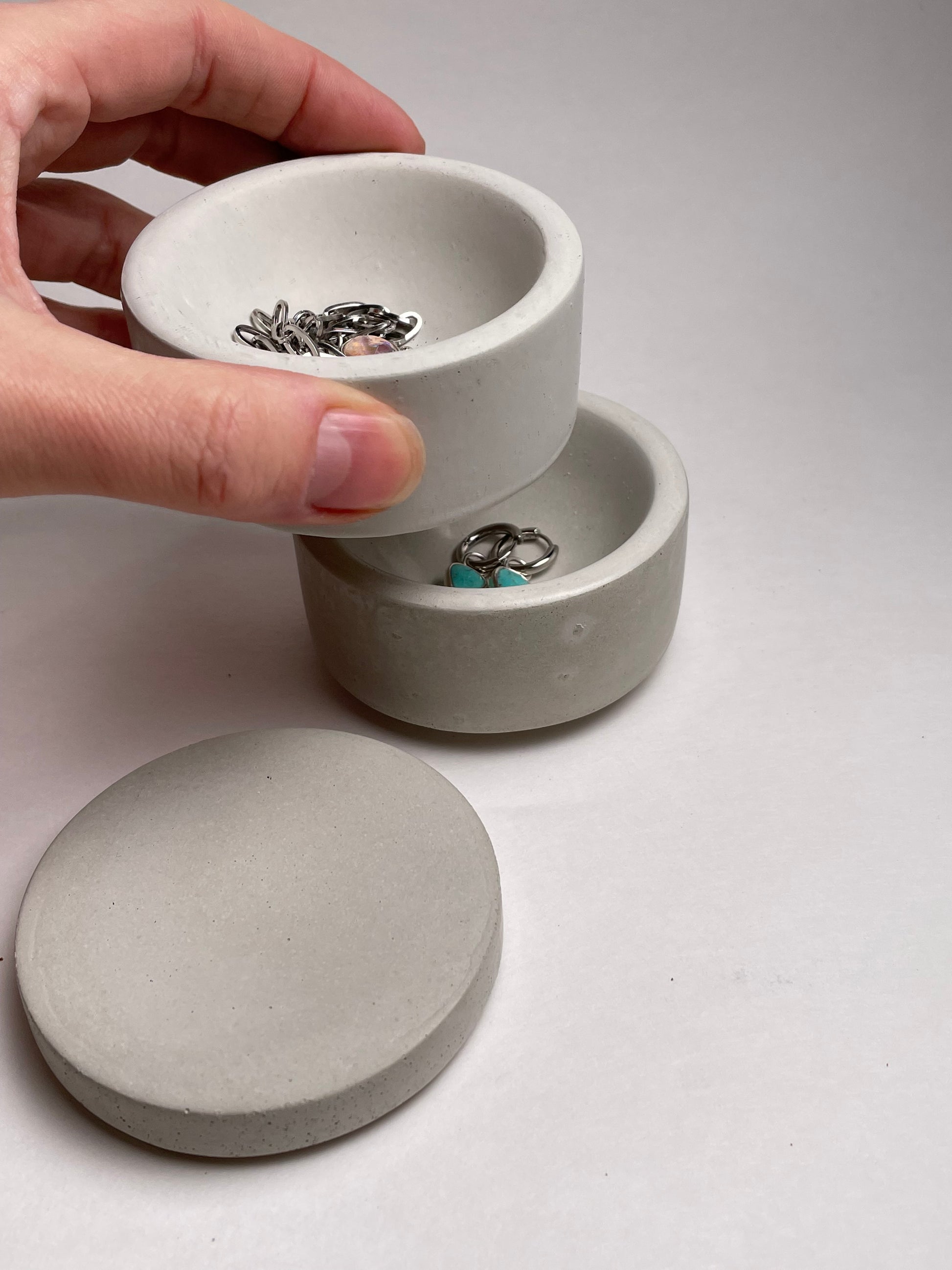 This combination is my absolute favorite space-saving jewelry dish, or any small essentials you want to keep close at hand.